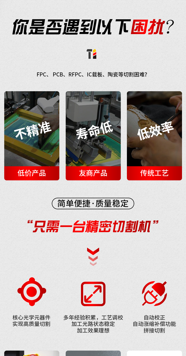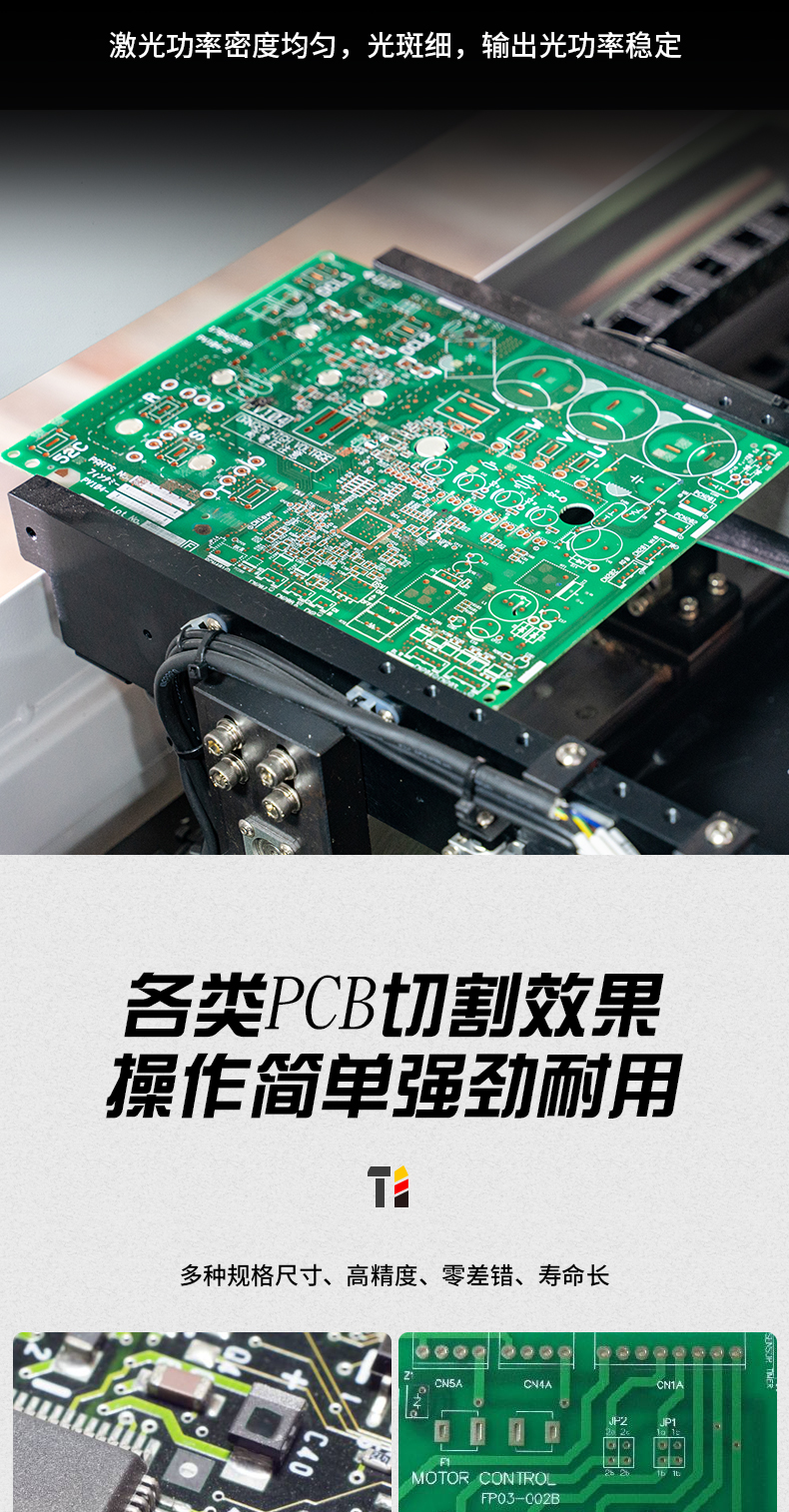 快速將拼板生產(chǎn)的PCB分割成獨(dú)立的電路板,加工LTCC,加工半固化片,在FR4上鉆孔、鉆微孔、激光直接成型電路圖形等。紫外激光與其他加工方式或其他激光相比,切割邊緣更整齊,外形尺寸精度更高。產(chǎn)品加工模式無間隙切換,只需點(diǎn)擊軟件菜單導(dǎo)入新加工項(xiàng)目即可。